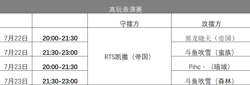 除此之外,斗鱼高玩表演赛活动也将于今明两天正式开启!一起前排收看大神比赛,开启不一样的周末时光!本次表演赛主要是展示 【7.21更新】后的游戏内容,所以将由改动最大的帝国阵营进行守擂,和四大阵营都各战一场!相信大家都非常好奇此次更新之后,更种族的整体实力会产生什么样的变化,让我们一起拭目以待吧!