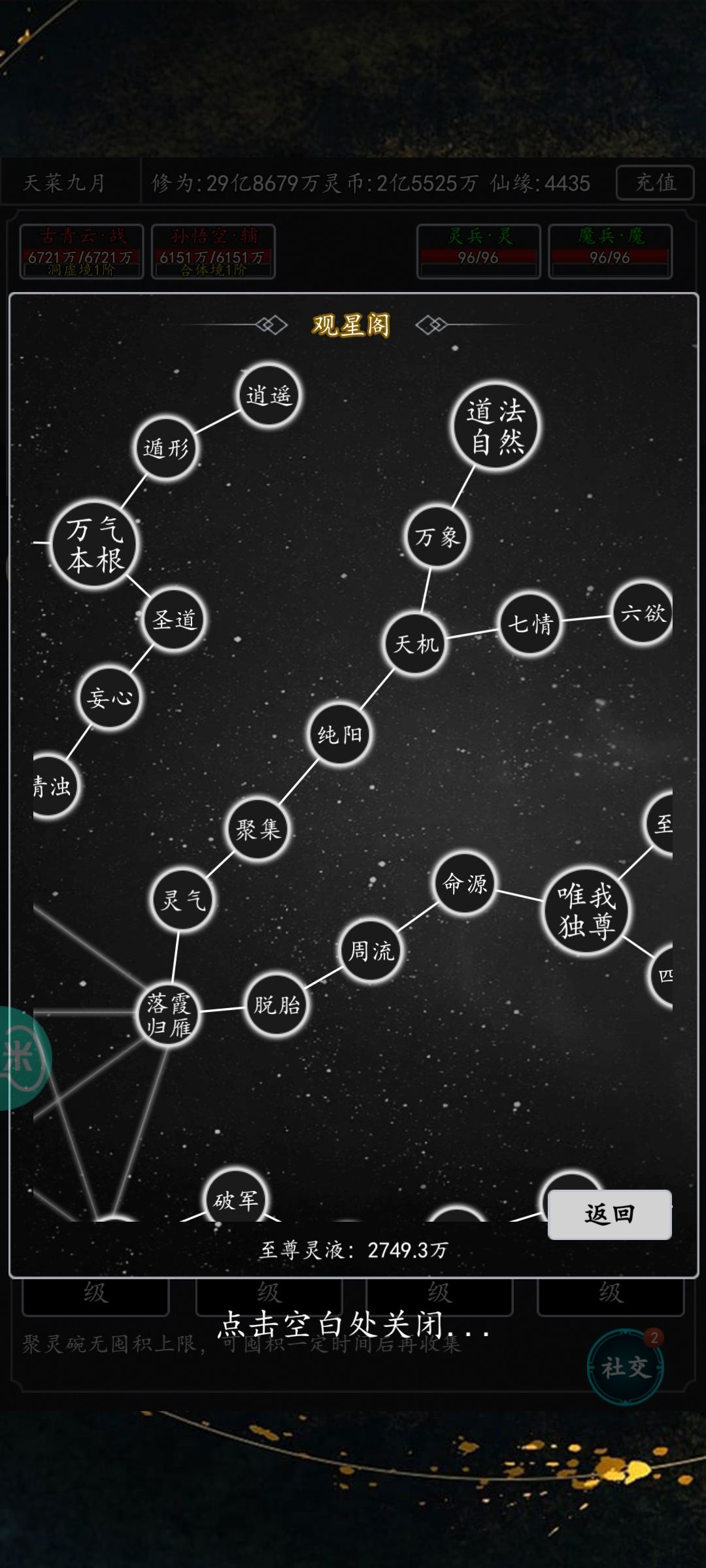 但是,一定要注意,不要去碰左边的魔族妖族伙伴加成,因为目前除了萧力,哪吒孙悟空和天蛇鬼帝这种伙伴卡,其他的伙伴都是人族😂,千万不要踩坑,如果是想要更快从前面星系跳到后面星系的小伙伴,建议你去找最便宜的花费去凑齐五十个加点的要求,不要浪费灵液了。