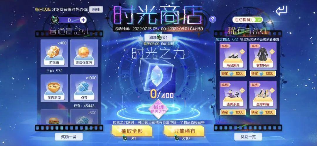 时光商店开启啦!小主人们使用时光沙漏就能抽取稀有盲盒机,多款美衣都在盲盒机中等你带走~