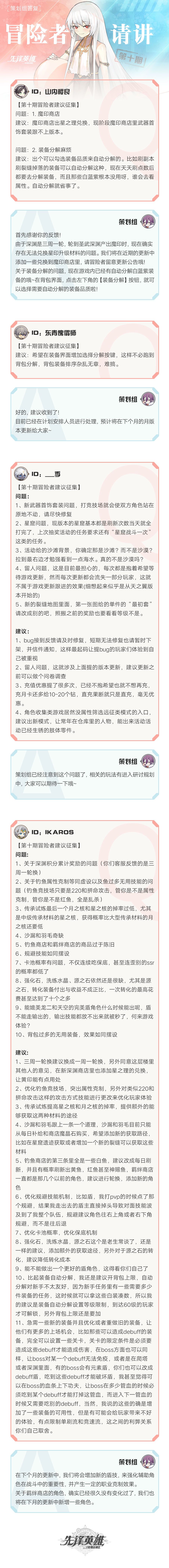 策划组采纳了很多冒险者的建议和想法,详情请看↓