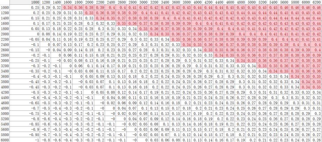 图表中负值为闪避几率为零
