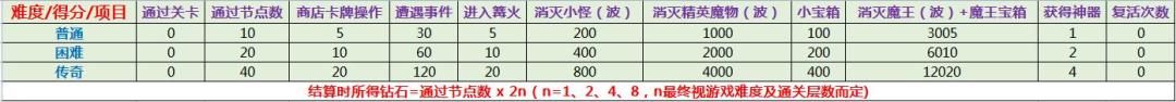 另外,通过节点数这项不是很清楚它是怎么计算有多少个的,奇奇怪怪。然后是钻石,一般普通难度下打一关能得2钻,困难是4钻,传奇是8钻,通关节点数乘于2、4、8这些基数就能计算出你最终能拿到的钻石。不过这个基数好像也是跟你通关的层数有关系,因为我发现之前我打了困难无尽1002层,最终所得钻石的数量=通关节点数*16,所以我觉得这个基数跟你通关的层数有关系,具体有怎样的关系就不是很清楚了😃