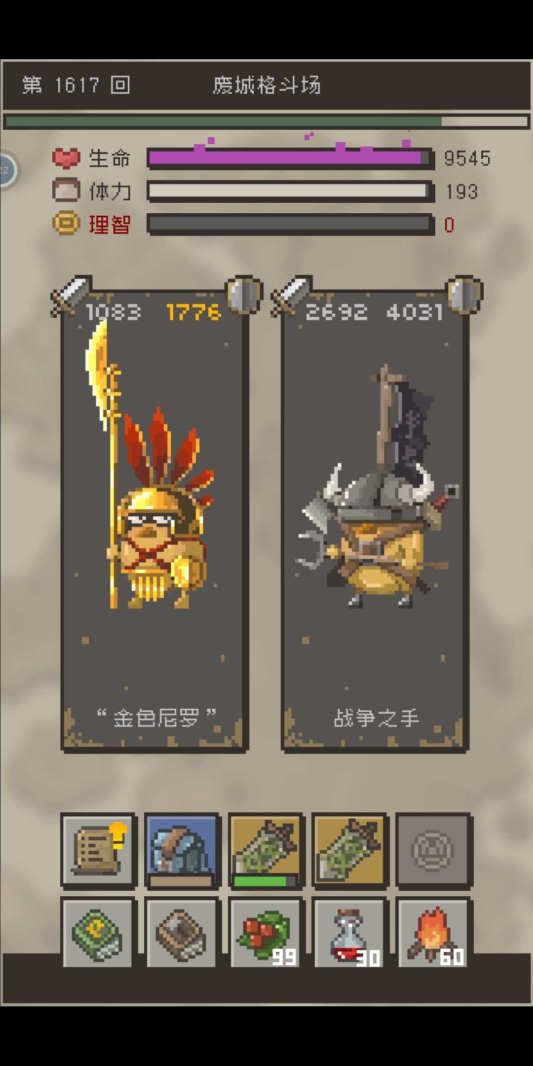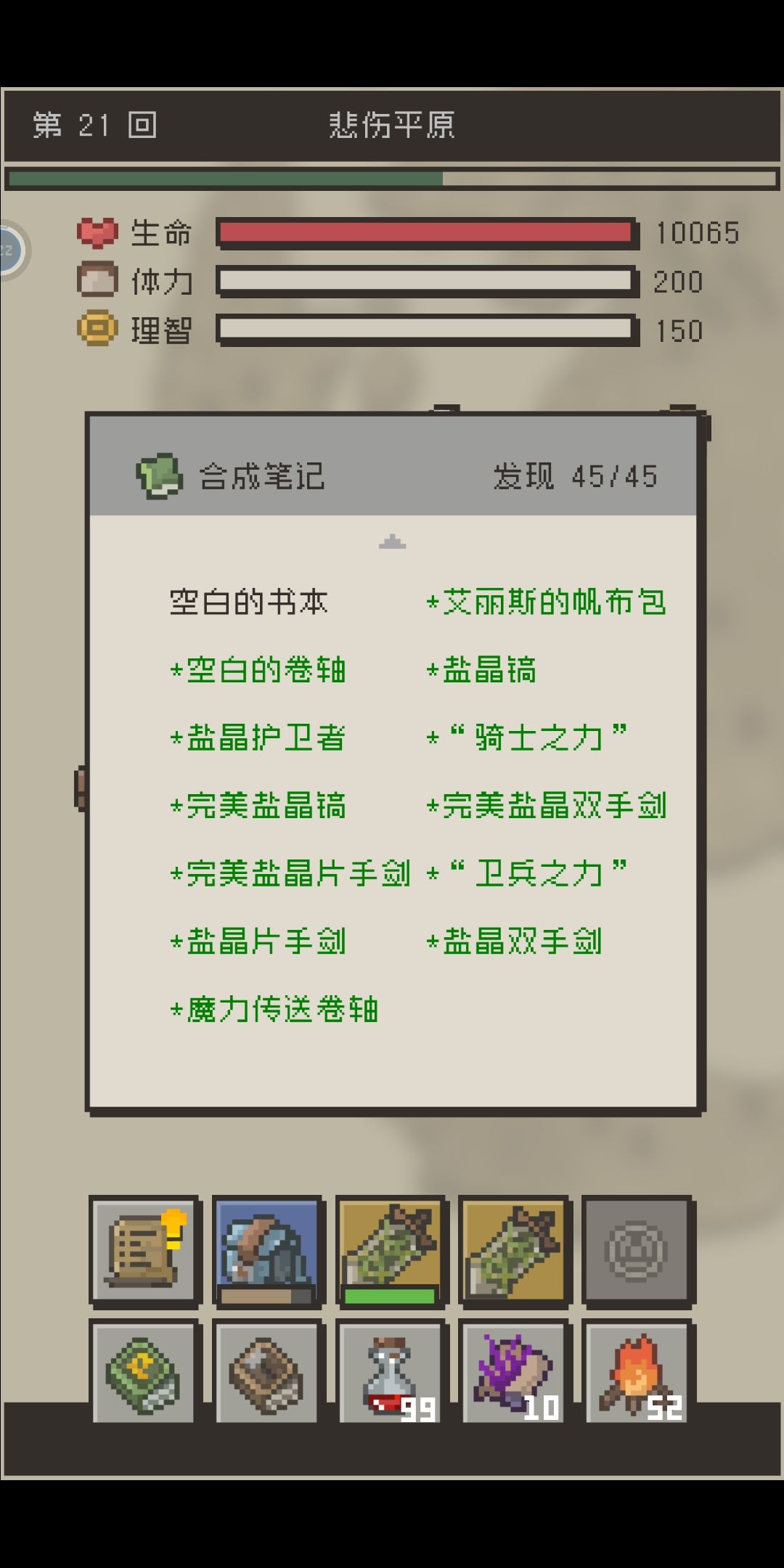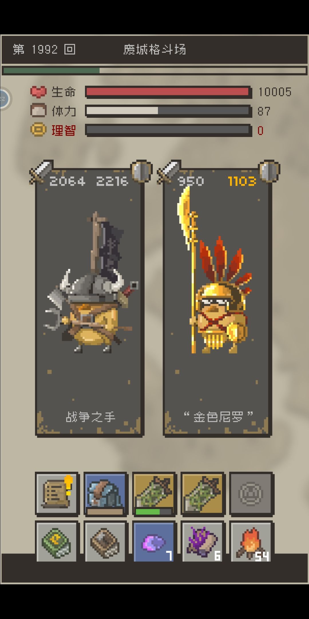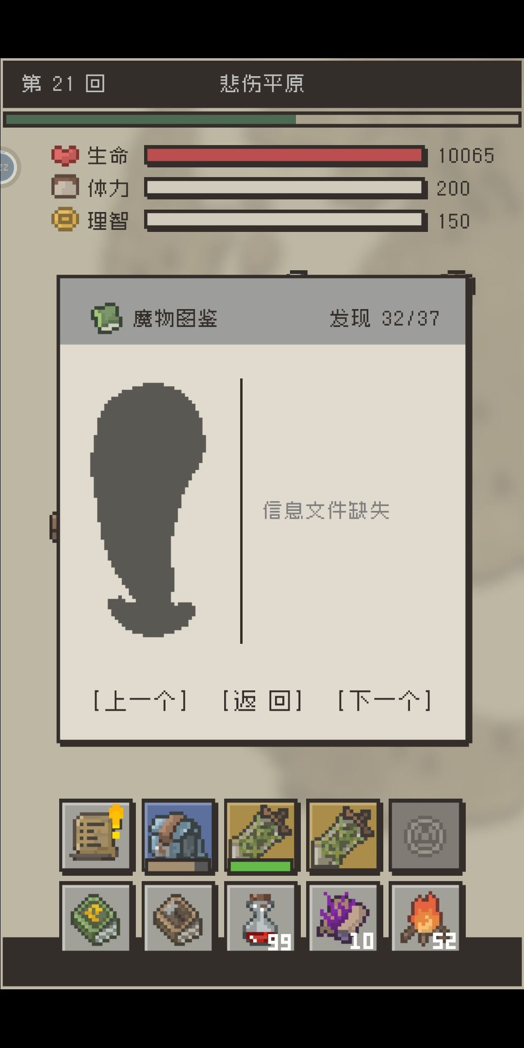 然后智商值没啥用,打蛋体力消耗太快,没地图,刚开始玩根本不知道boss在哪?还有想从一区域到另一区域,除了用传送卷轴,只能慢慢打,经测试,需要打100~350回左右才能到下一区域(就问你坑不坑),而且到了另个区域还不一定能遇到boss,后面玩多了才知道,boss最常出现在老城废墟和失落洞窟里,打7周目时boss跑到悲伤平原去了。。