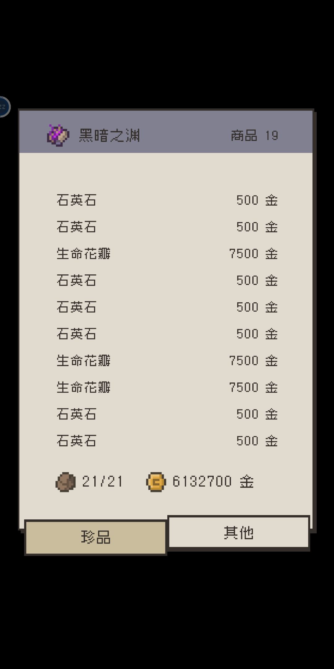 前期商店不开放,好像过了2周目才开放了一个杂货店,到了5周目开放其他商店,不过卖的东西也没啥卵用,还有那黄金宝箱,我到7周目了,压根连一把黄金钥匙都没见过,青铜白银宝箱开出来的东西也不咋样,宝箱不应该弄些稀有品吗?然后是背包,格数太少,合成笔记已记录的不能直接在画面显示,老是要打开笔记看一下合过没有?怪物种类少,玩多了会看腻(还不如减少回合数,增加怪物种类,不然一直点不仅折磨人还会让人犯困,偶尔弄些随机事件也好啊)