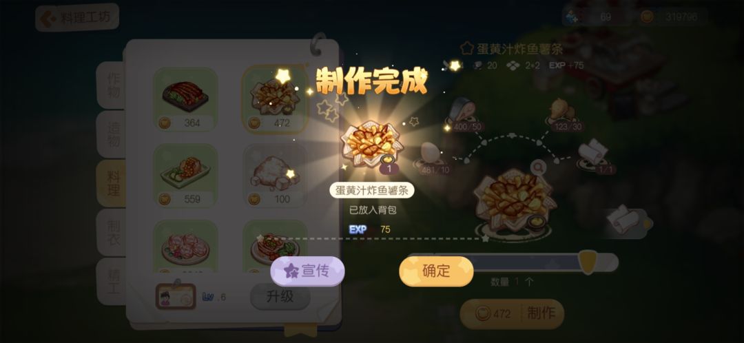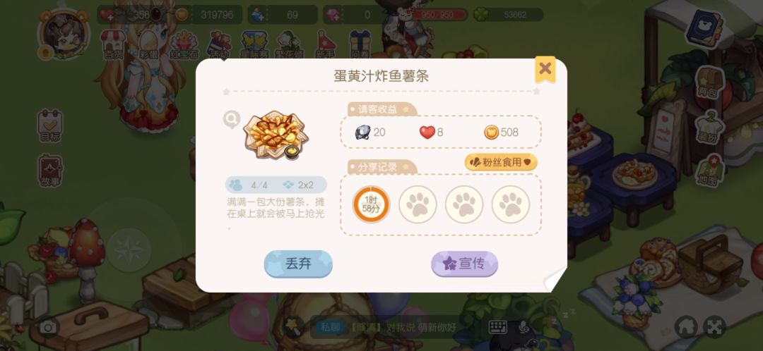 不知道大家发现没有,收拾吃完的食物我看了是有奖励的。然后我发现了这个炸鱼薯条,如图: