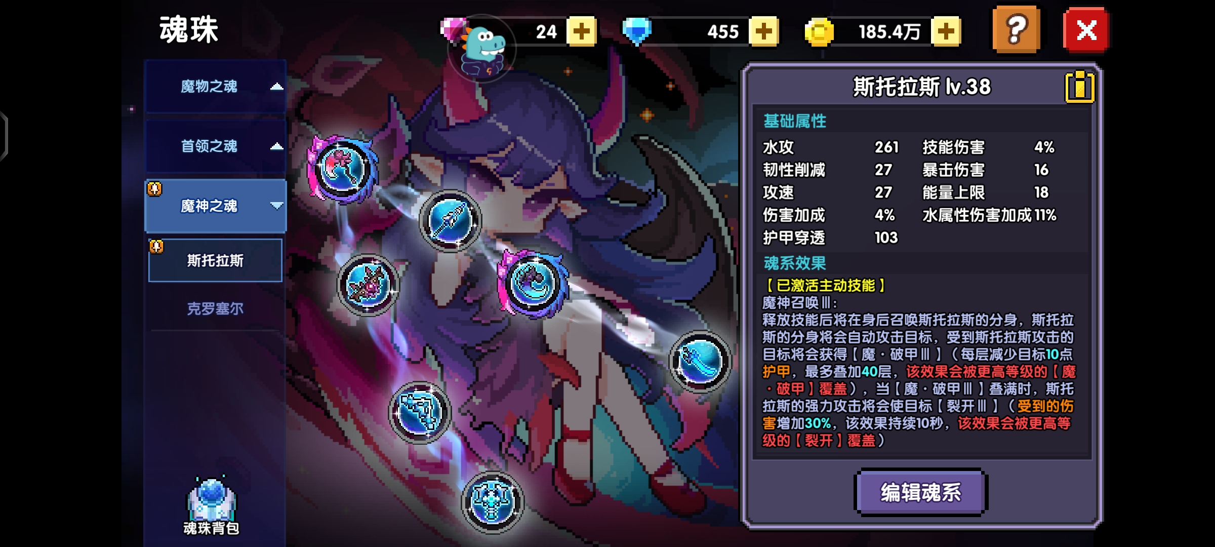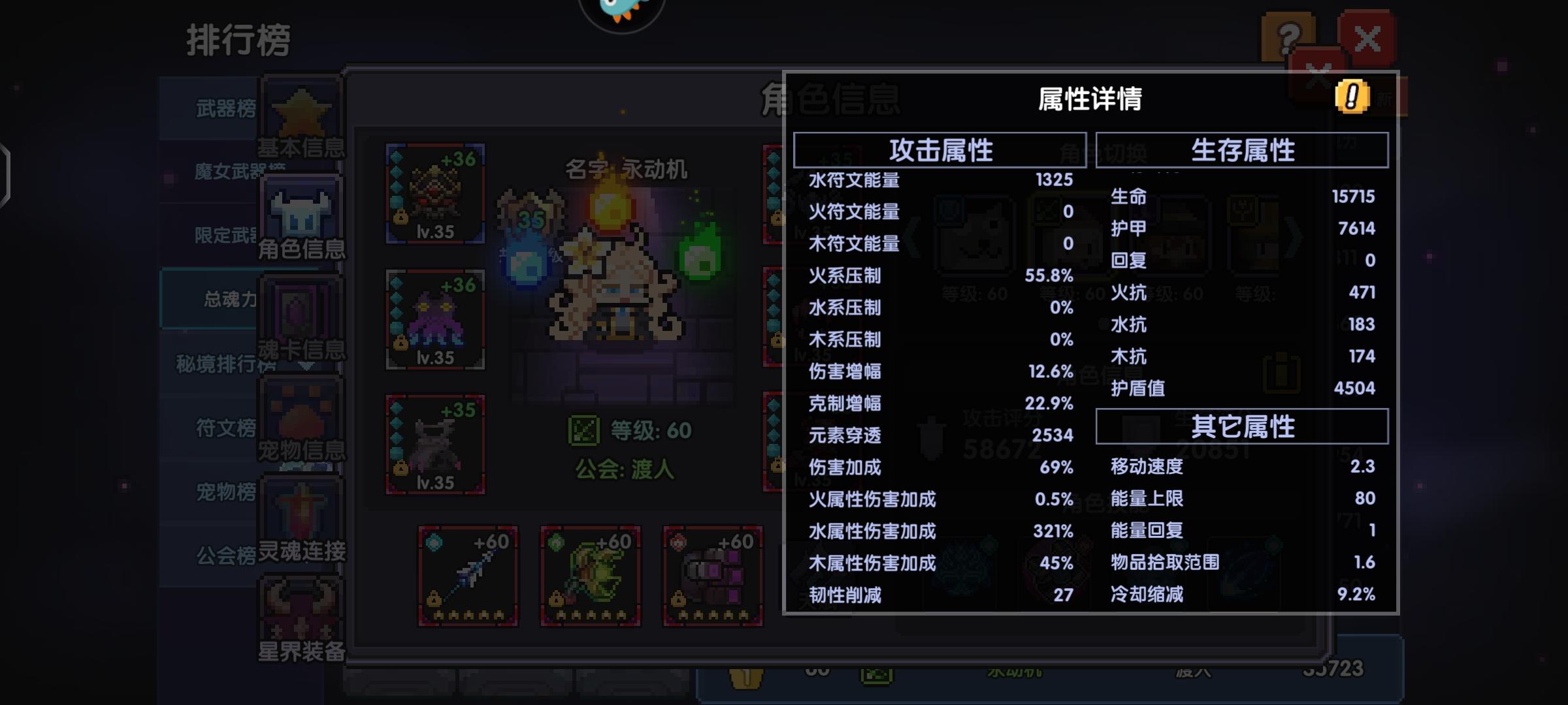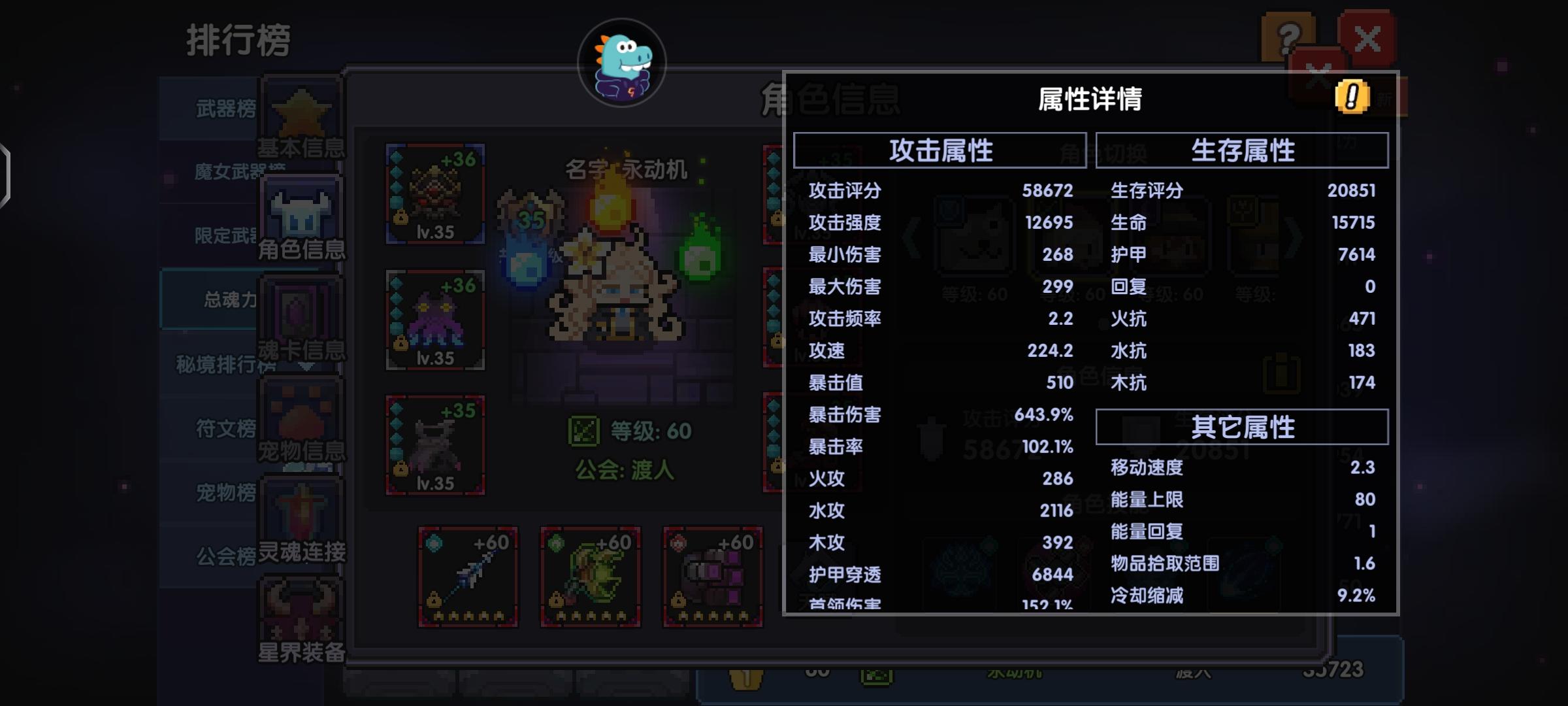 这个是个人面板可以看出我的护甲穿透有6800,但是大秘境100层的boss有8500护甲,我们可以用魂卡和魂珠弥补穿透