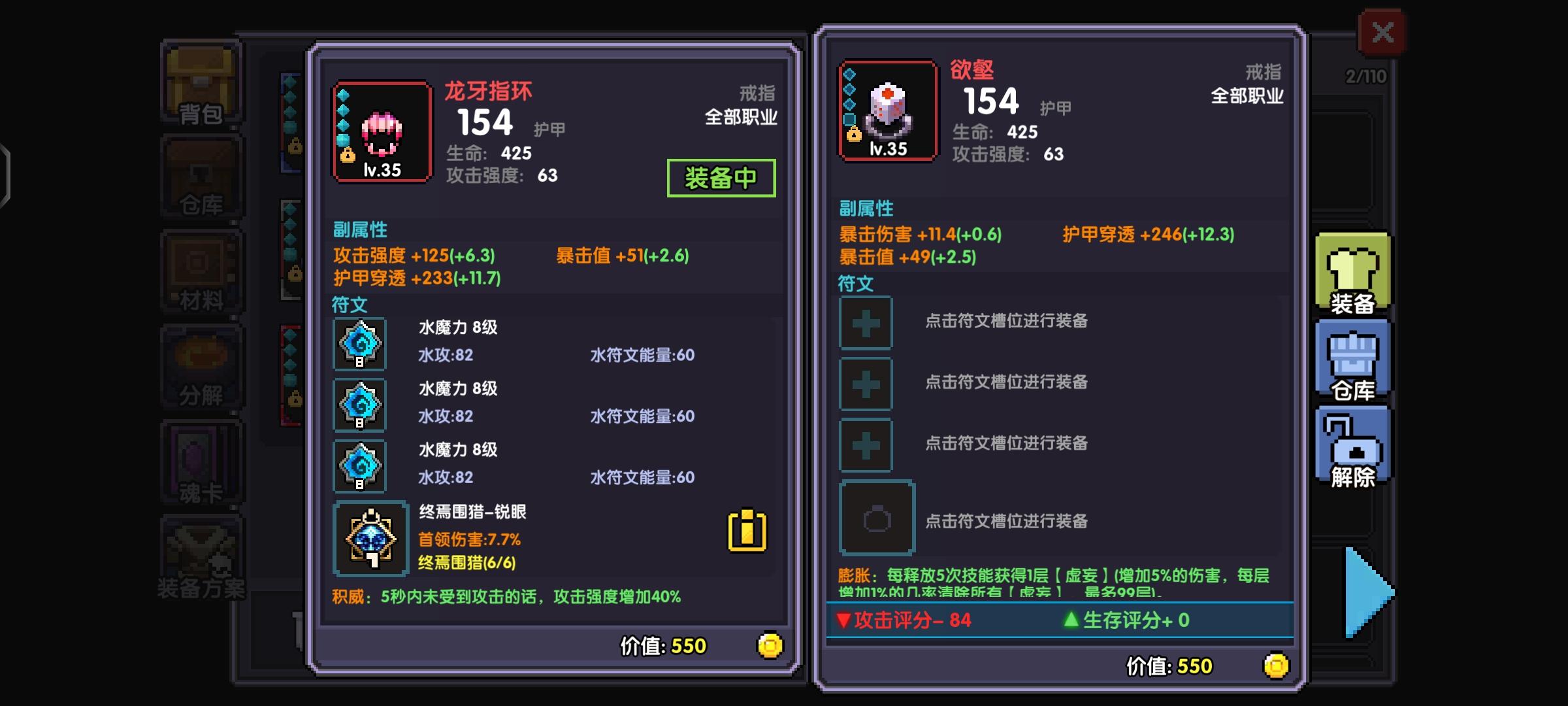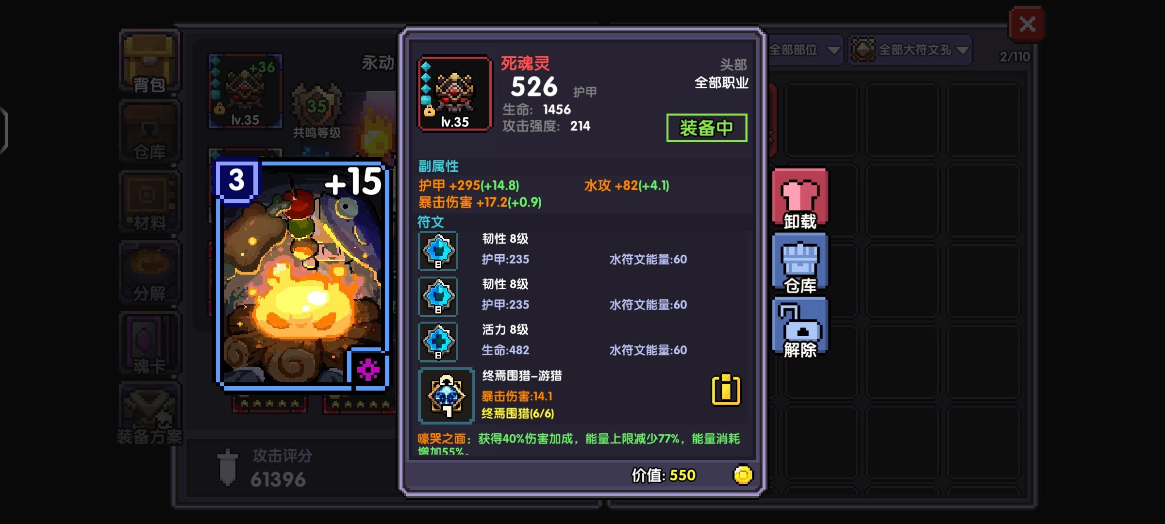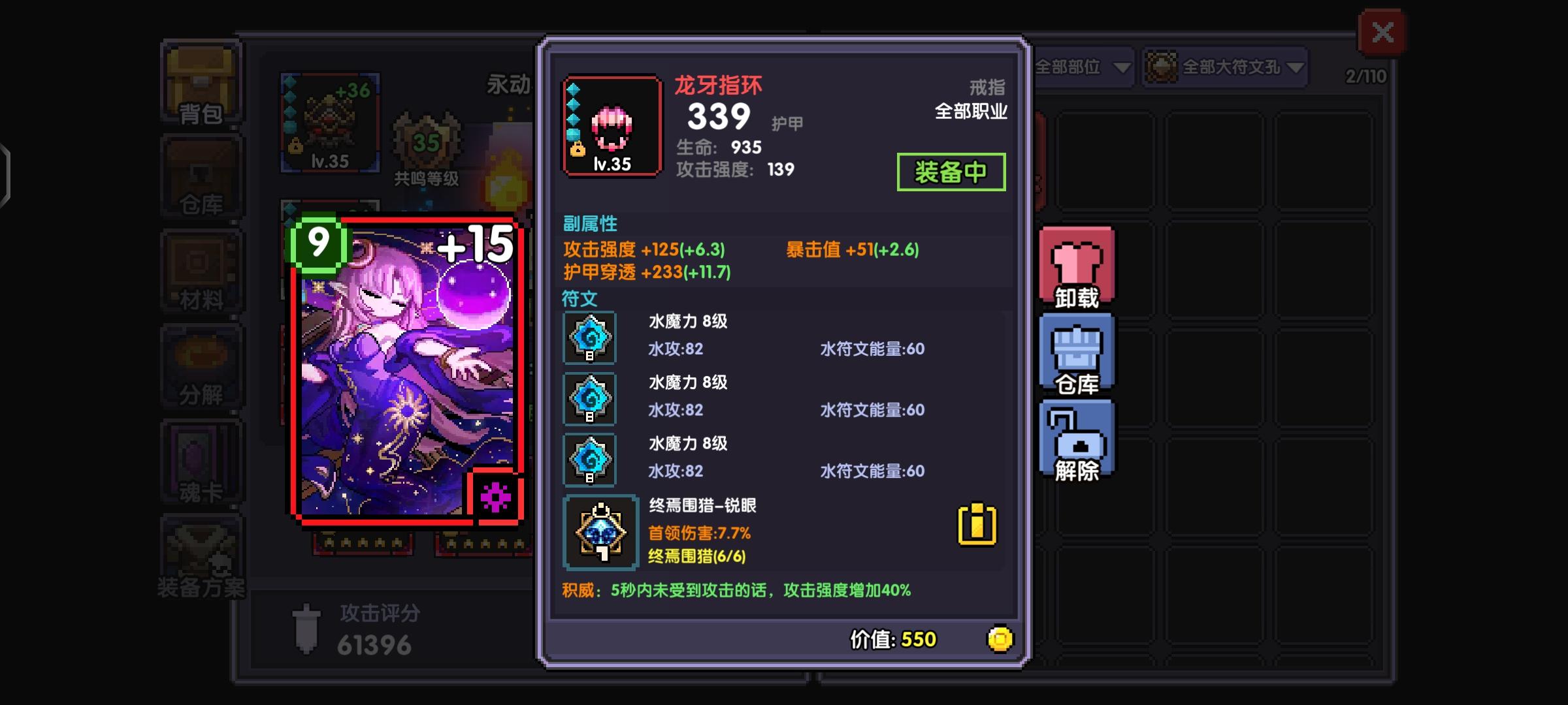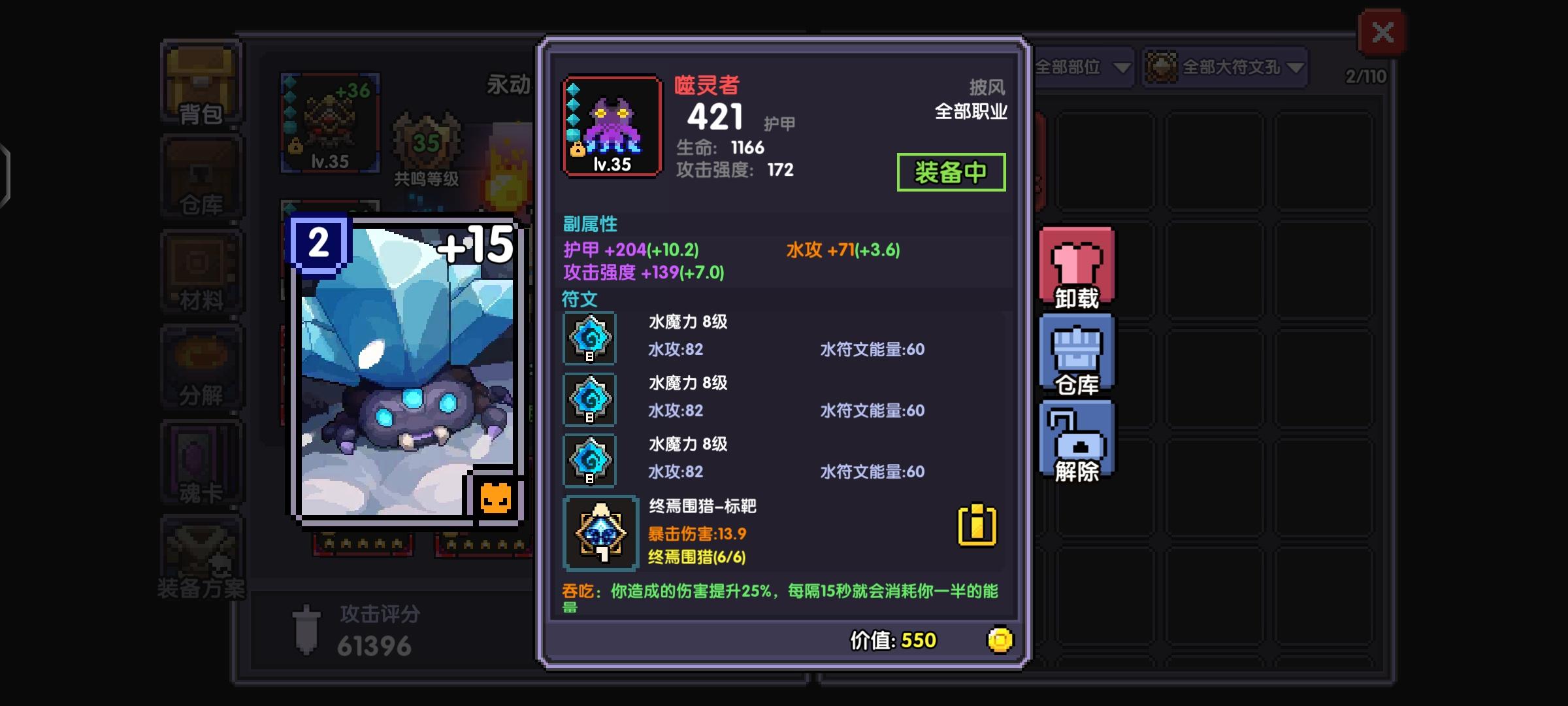 这个是个人面板可以看出我的护甲穿透有6800,但是大秘境100层的boss有8500护甲,我们可以用魂卡和魂珠弥补穿透