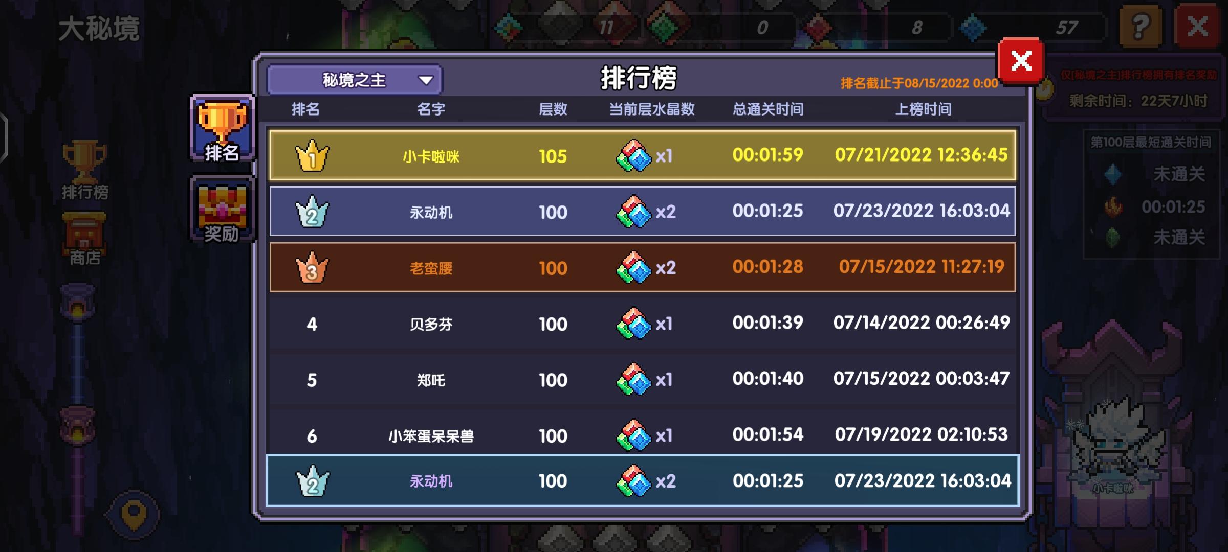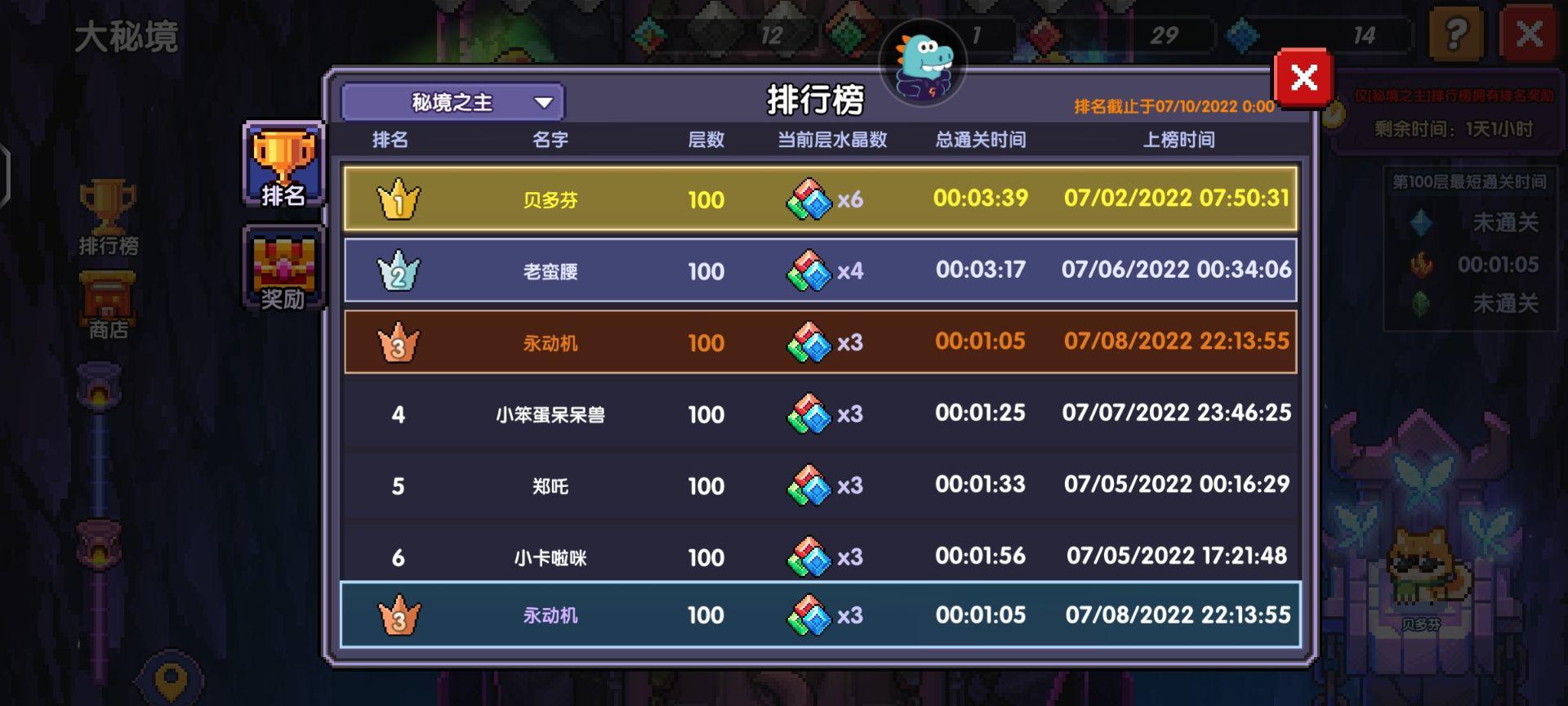 上期大秘境群怪以单系1.05秒41区最快bd,这一期boss大秘境以1.25秒100层位居第二,下面有图片