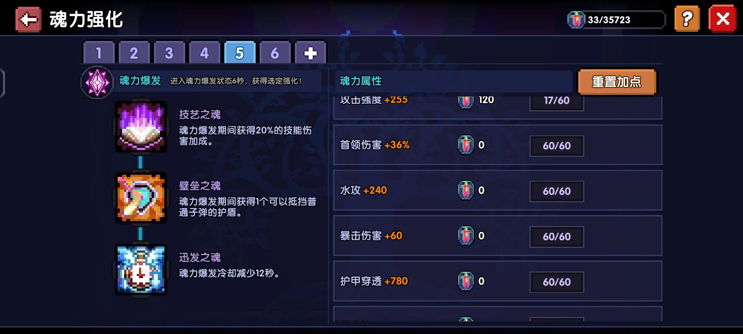 首先首领是要点满的然后甲穿 剩下的可以选择1:1:1,第二个爆发一定要选护盾(弹幕多的情况下可以短暂性基本无敌,同时配合龙牙的效果)选择减少12秒是为了减少触发护盾的时间,从而追求极限