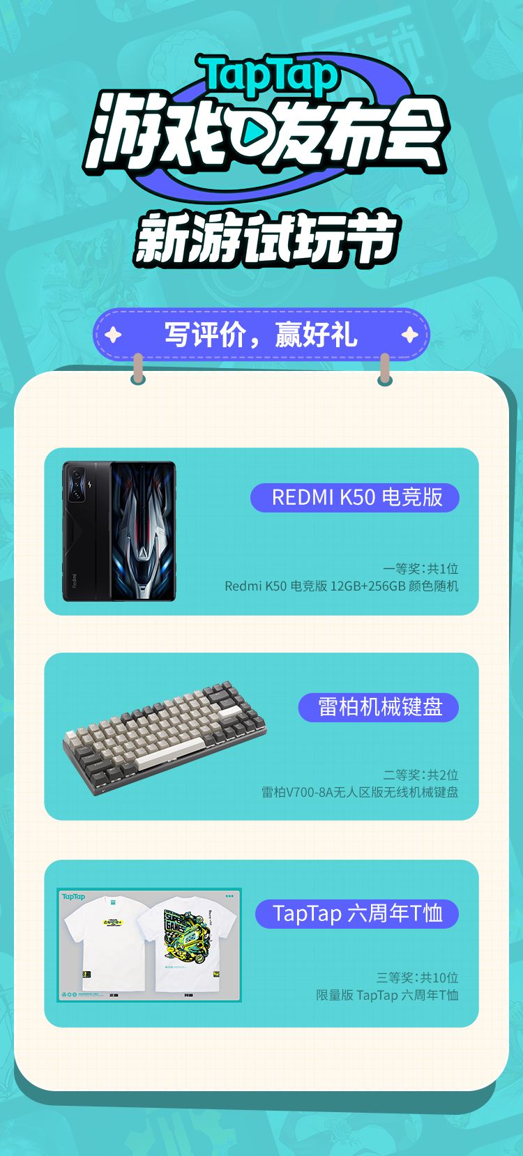 给试玩节的游戏写客观评价,还有机会获得「Redmi K50手机、雷柏键盘」等哦,写完评价记得在本帖回复截图和链接~详情请拉到文章最后。