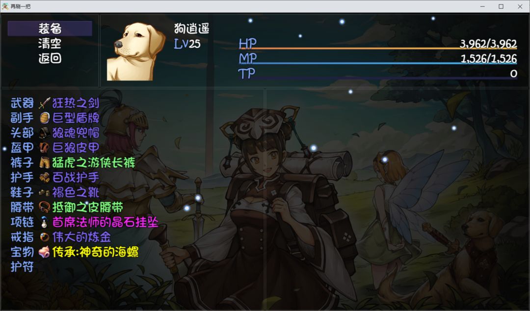 队伍配置如下图,等级挂机升到了30级,不然之前是24级差不多,打前喝药加存档就可以开始sl了。