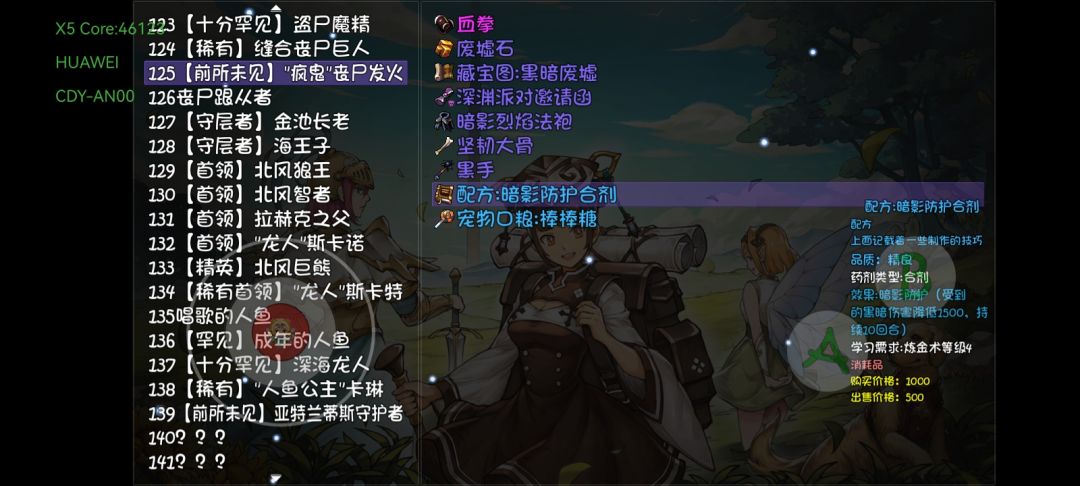 在“鱼人海岸”右边的商人可以买药剂,50盾和10属性,材料地点为商人,鱼人海岸,第五层罕见的哥布林。