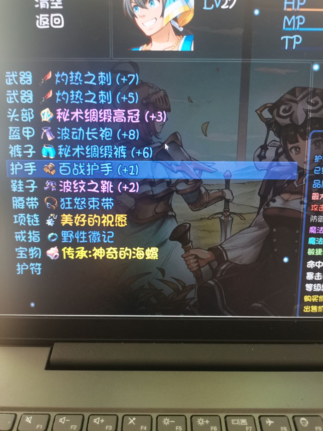 大厅右边盲目的洛尔那儿卖护甲片,自己多刷点孔多的防具,尽量提升双防和血量。
