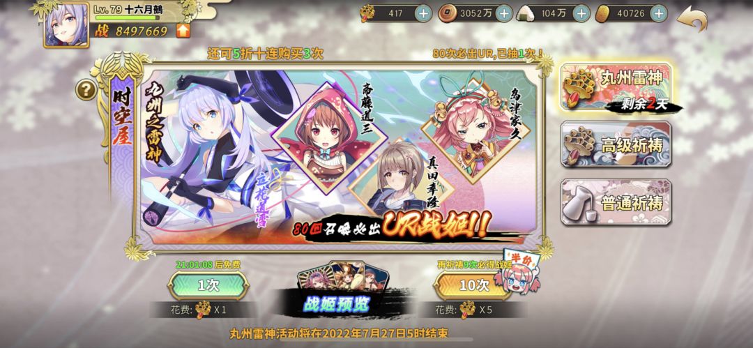 新卡池上立花道雪,卡池描述居然是丸州雷神,应该是图片上“九州之雷神”的毛笔字体被文盲策划看差了。一个战国题材游戏,这种常识性错误,真是贻笑大方。