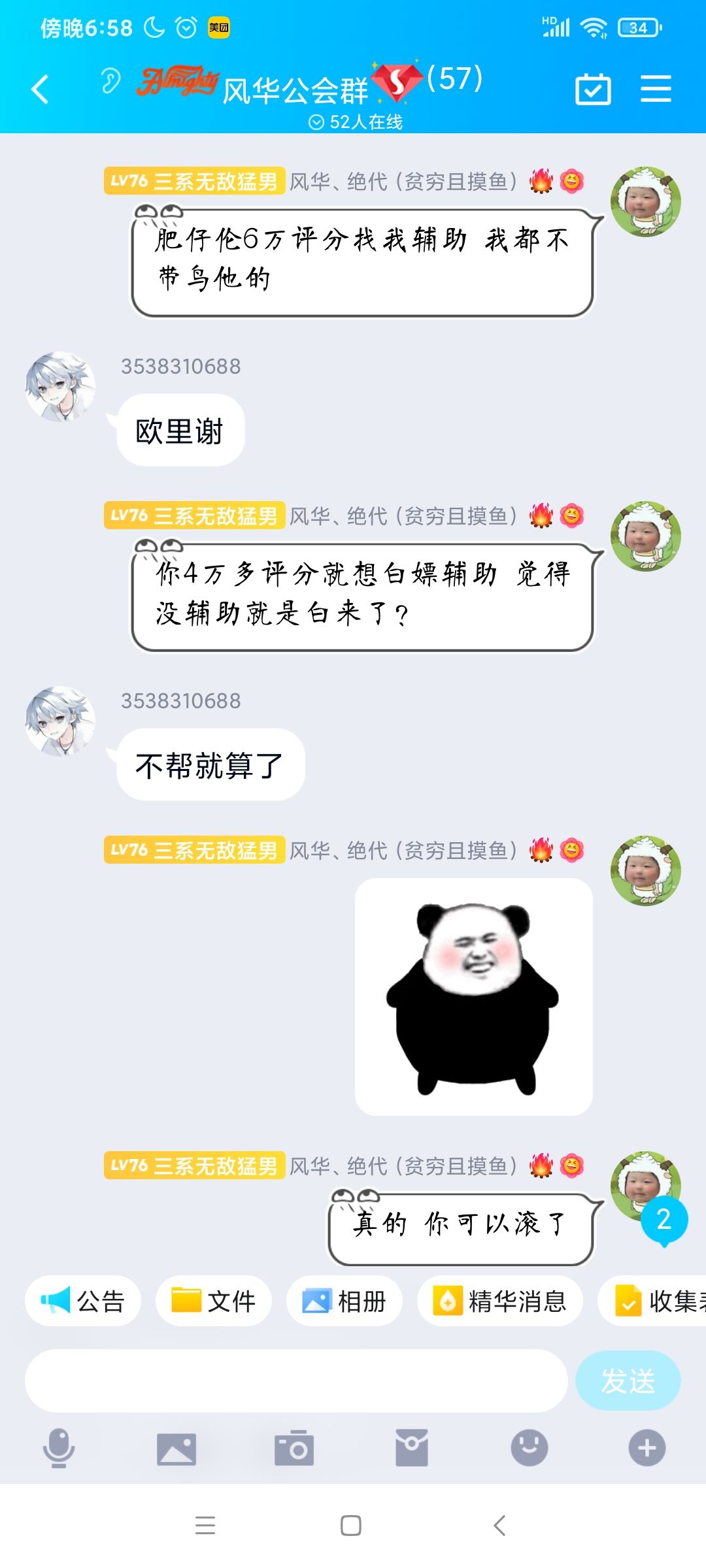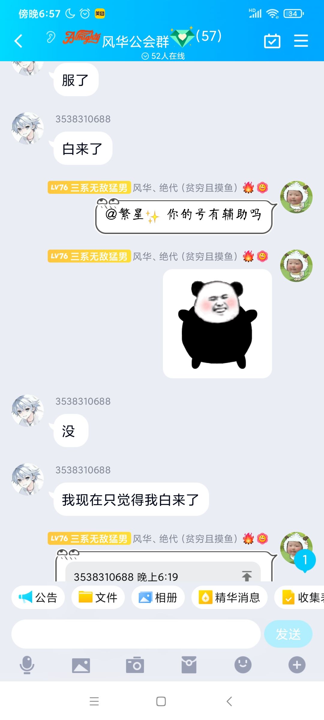 以下三图是平时辅助公会成员的聊天截图