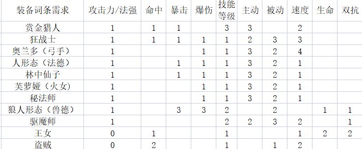 备注:由于主角,盾哥,牧师,死灵作用有限,表中就不列出了。表中3表示强势,1表示很弱。