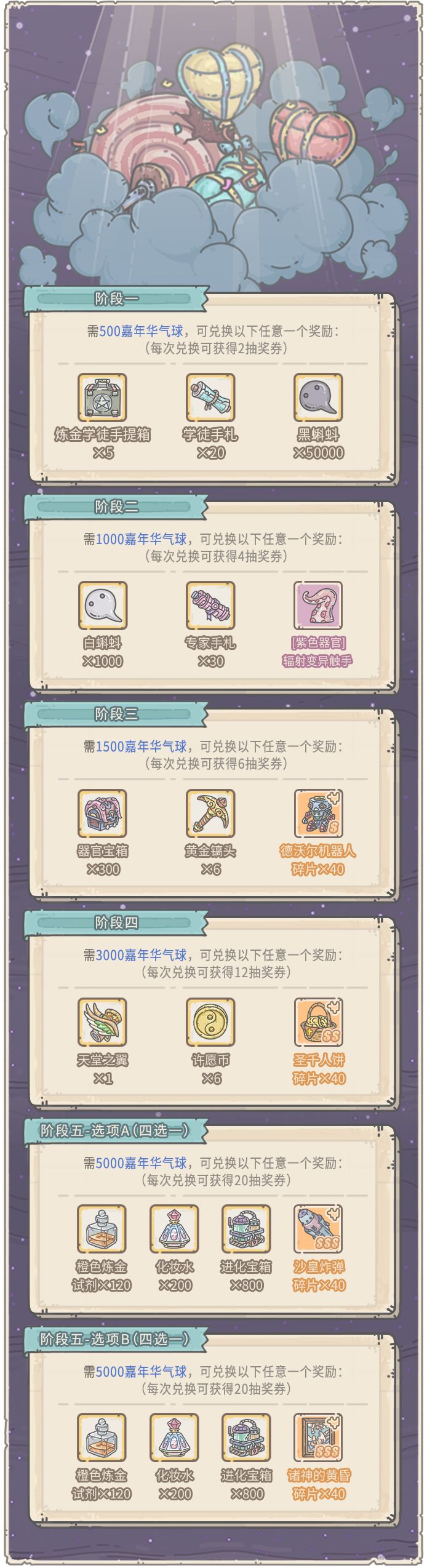 1、活动期间,可消耗活动货币“嘉年华气球”,兑换奖励