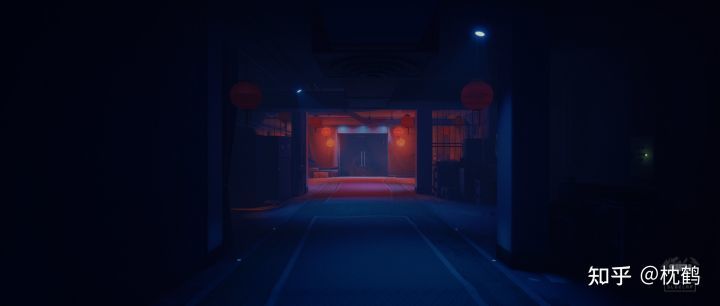 游戏在“墙内”关卡时主要使用的是偏向真实感的环境光为主,在进入“死城”后游戏开始以艺术化的人为打灯为主,进行氛围的渲染和加强画面的对比,而到了室内关卡“公寓”时,则可以更加自由地进行灯光塑造。