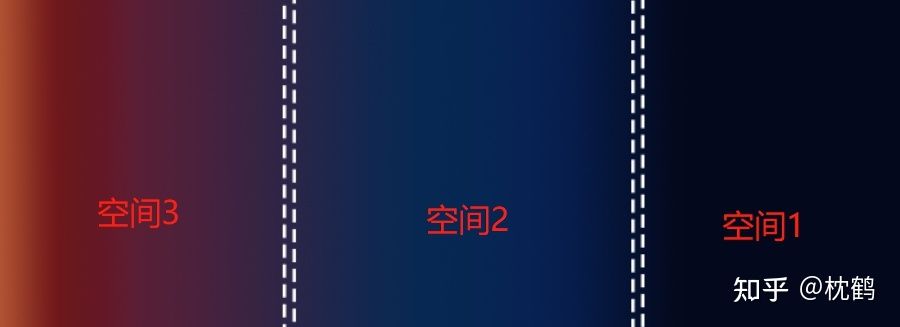 色彩对比的另一个作用是打造纵深,与灰度打造纵深的方式不同,直接利用不同的颜色来划分空间区域。