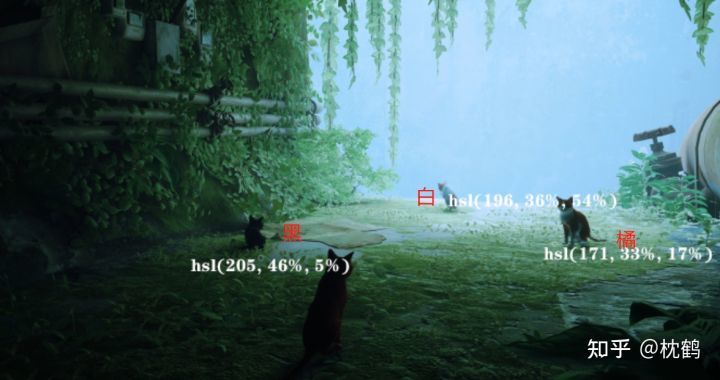 灰度重要表现的另一个点是,这三只伙伴AI小猫的肤色,是呈距离按灰度分布的,这有利于保证玩家的接触顺序。