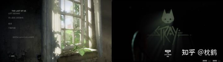 《Stray》同样是使用了类似的克制设计,在登陆界面展现极为有限的东西:游戏标题,选项和一只猫。但是却通过画面表现了阴霾下的神秘和一丝惊悚。虽然还未通关,但是故事内容肯定是八九不离十了。