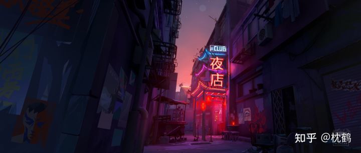 霓虹灯变化多样,且吸引人,控制霓虹灯在场景中出现的位置以及频率是把握包含霓虹灯光效场景节奏的关键,霓虹灯远比比想象中要复杂。如果把握不好,画面的节奏就会变得纷乱繁杂,不易于阅读。