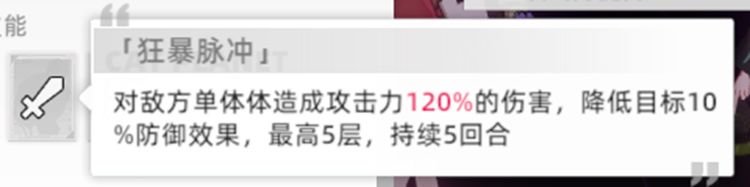 BOSS魔方技能1:单体中倍率多段伤害,并降低目标10%防御,最高可叠加五层,持续五个回合。