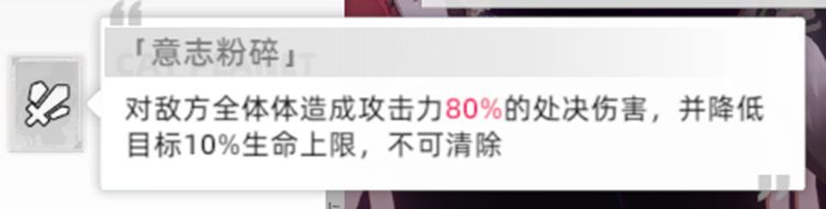 BOSS魔方技能2:全体低倍率单段处决伤害,并降低我方10%血量上限,不可被清除,降低血量上限最高叠加9层。