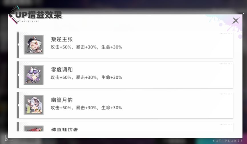 使用有UP增益的武装也能帮助提升伤害。其实从UP增益来看,官方已经明示大家怎么打高分了:单体队伍可以用高额单体输出的叛逆主张+带有扩散效果的雷鬼节奏,群体队伍可以用有群体攻击能力的零度调和与纯真拜访者。