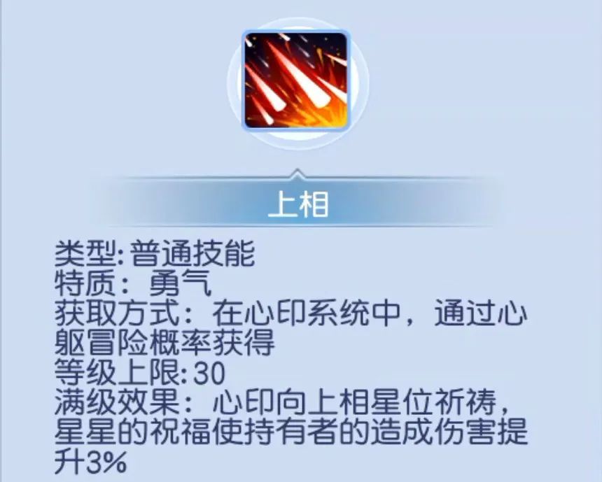 上一个弧矢是物理必备,那么上相这个技能,可以说是输出必备,装备这个技能能够提高伤害3%,和弧矢搭配起来,一减一加,得到的效果可不是3+3=6,小编利用野外的宝藏妖怪进行过测试,带上这两个技能和不带这两个技能,群秒数据已经相差接近10%!当然这些数据肯定是玩家个人得到的结果,具体还要你自己看!