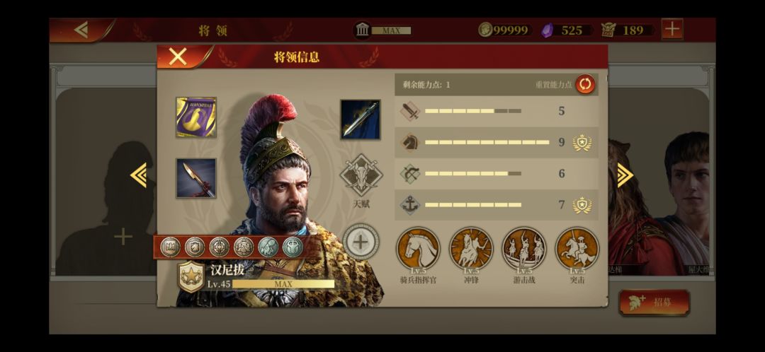 我感觉养残了,现在想给他套上骑兵戎装,带权杖弄成一个骑兵BUFF机,跟在汉尼拔和韩信后面跑。