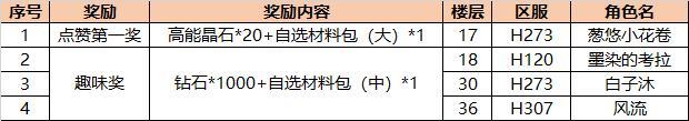 趣味奖(3位):钻石*1000+自选材料包(中)*1