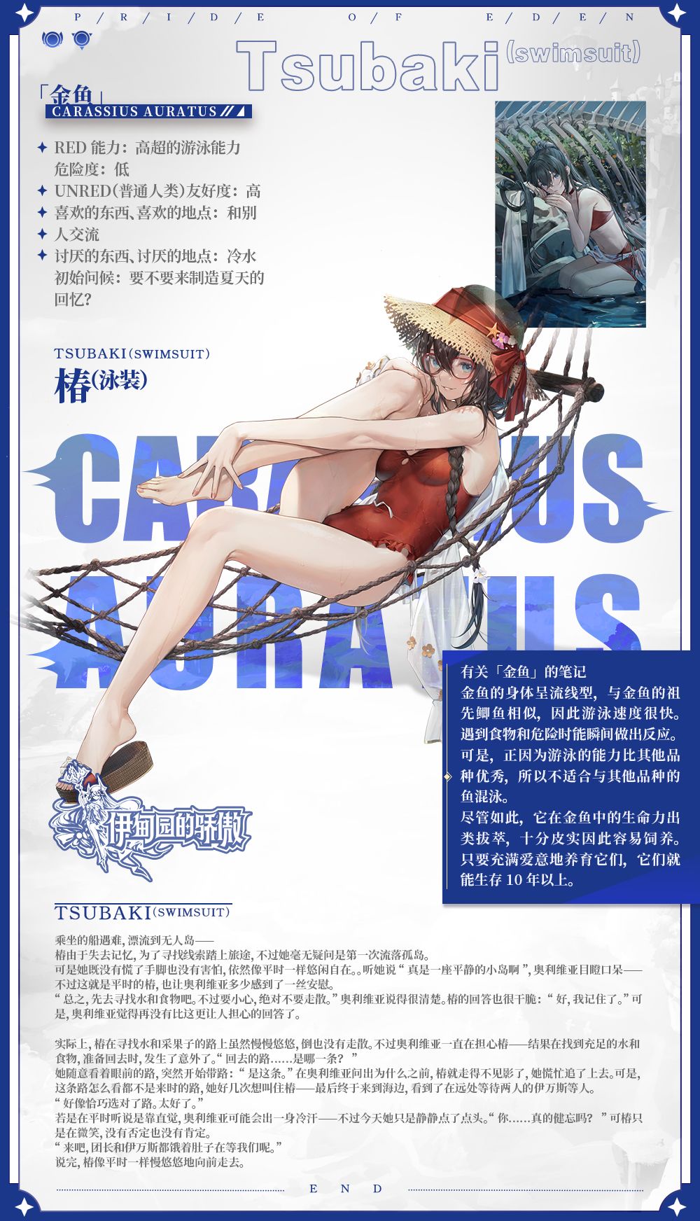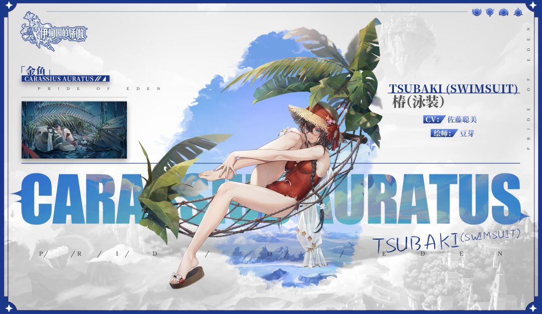 ✦8月1日5:00起#伊甸园的骄傲# 游戏内将开启【金鱼公主的暑期问候】限时招募,SSR冒险者「椿(泳装)」出现概率占SSR冒险者出现概率的50%,欢迎Leader参与招募~