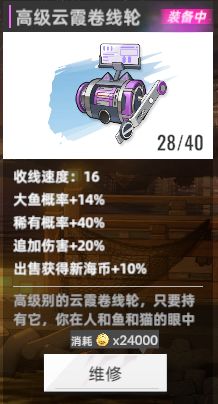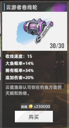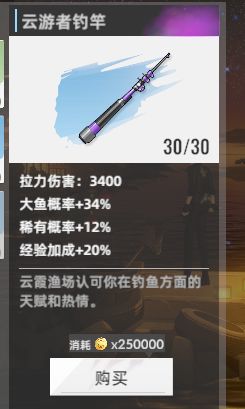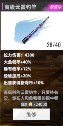 到33级后购买猫眼石的鱼竿和线轮。为什么呢,因为氪金的就是要强嘛,而且重要的是它还有加成!