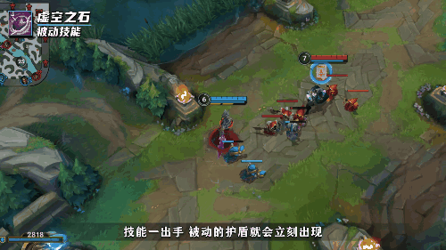卡萨丁在附近有敌人时释放技能,会获得可吸收魔法伤害的护盾持续1.5秒,卡萨丁的被动一定要在有敌方英雄的视野时,且在一定的距离内才能获得,技能一但出手,被动的护盾就会立刻出现,在“换血”时非常好用。