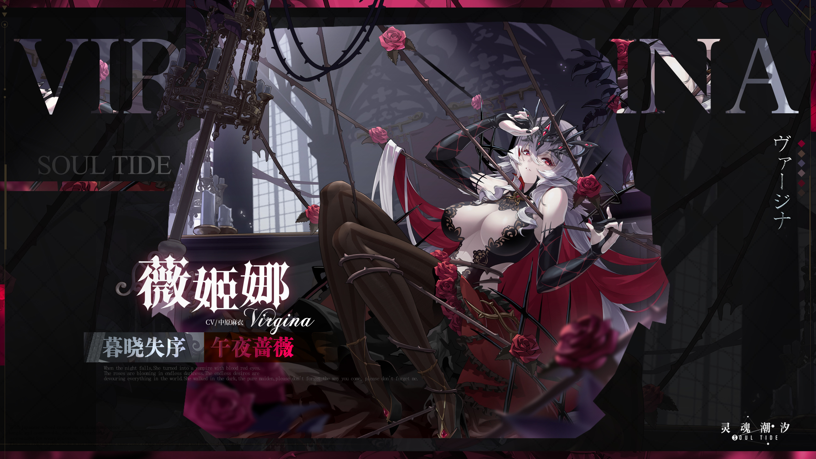 夜幕终至,薇姬娜化身暗黑哥特吸血鬼,血色双眸神秘莫测。无边黑暗下蔷薇花盛放,挣扎于汹涌欲望,原本纯洁的少女啊,向谁祈祷莫失莫忘...