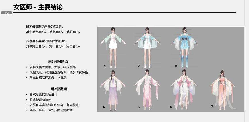 女医生在《倩女》玩家中的比例非常高,在这次主角迭代过程中占有重要地位。迭代时如果只是一味地做好看,有可能会遭到代入感高的老玩家吐槽。所以我们组织了4次玩家调研,最终决定在以前手绘版的基础上最大程度还原,同时提升细节表现。