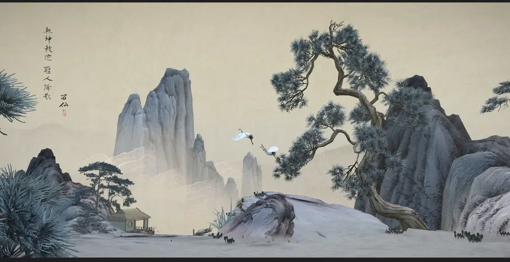 在新的乾坤袋场景中,我们则继续对水墨工笔风格进行探索和改进: