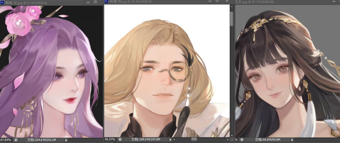 以前老版立绘的面部刻画(强调写实结构和光影)