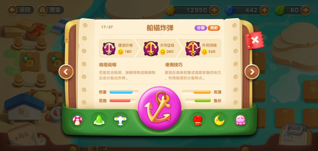 3,很多时候刷新炮塔也是很有必要的,系统随机给的炮塔也许并不是最合适的。(1)这边推荐一些通关率高的输出炮台