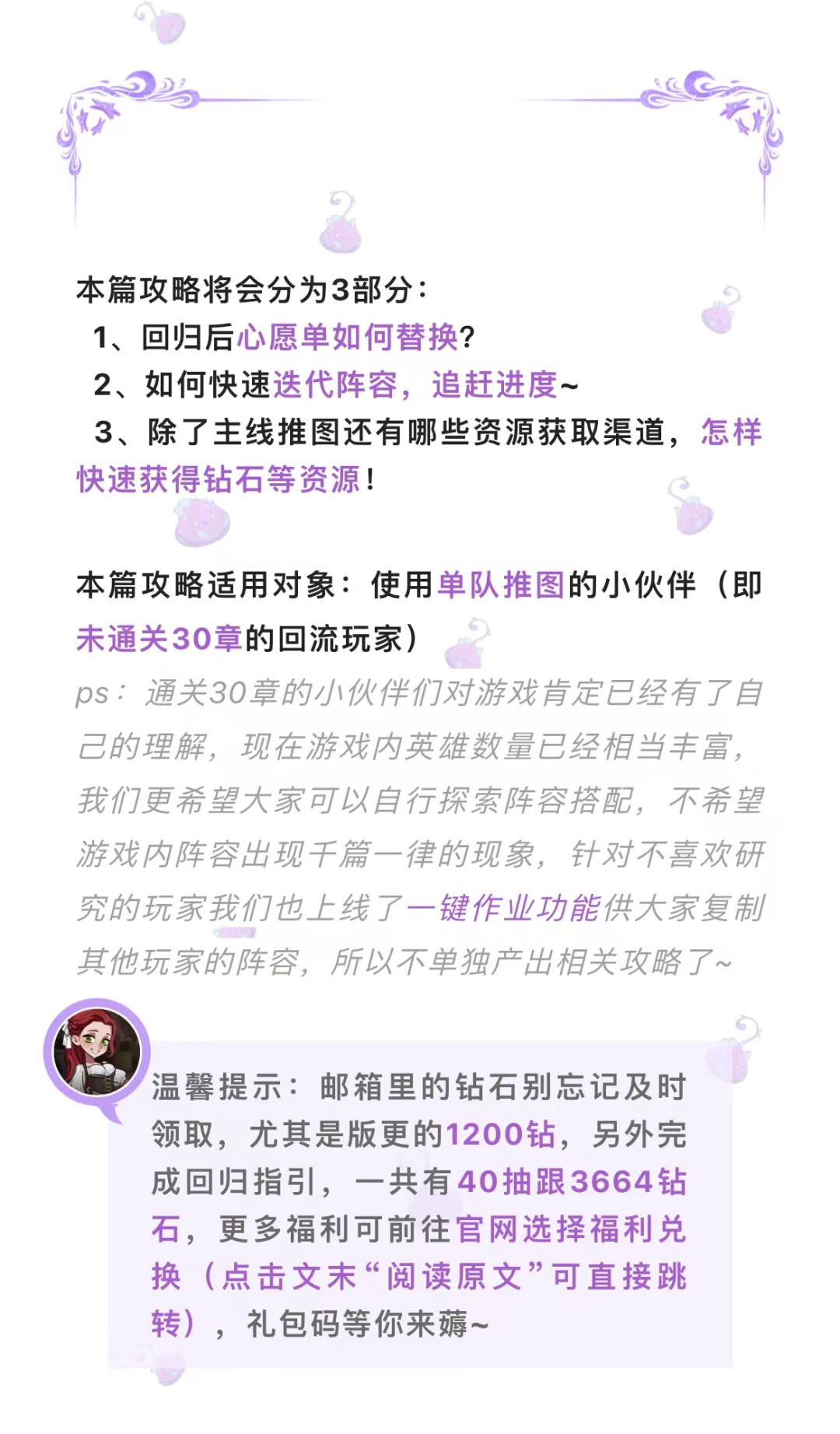 回流玩家攻略 | 回流玩家不可错过的一个攻略!(本文适用于30章以前玩家)