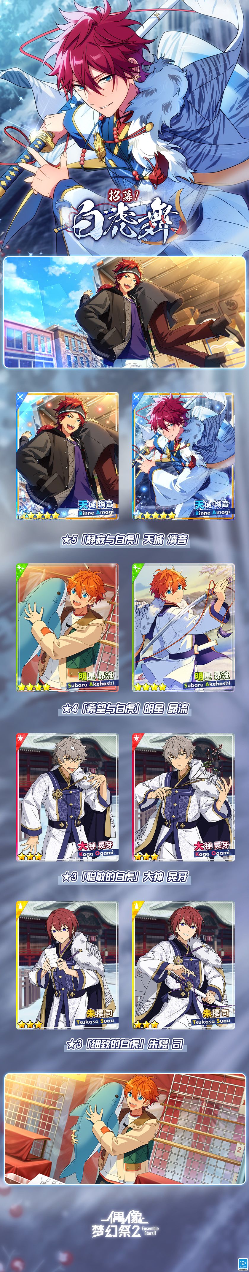 一、「招募!白虎舞」限定卡池内容如下: