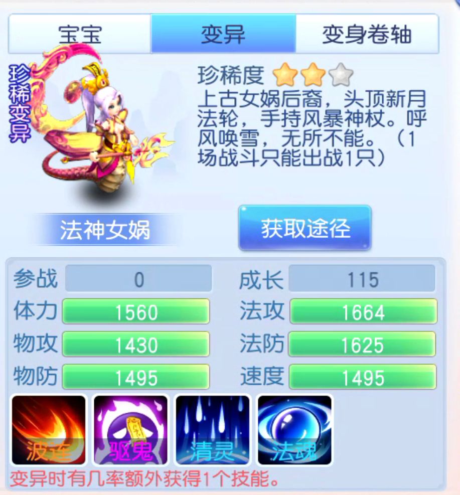 其实,法神女娲是一只一直以来被低估的宠物。看似不起眼的存在,但是却有一个超级变态的技能,主动技能波连第一下只有百分之五十的伤害,第二下随机目标是根据第一次伤害的百分之五十乘于二,造成伤害结果,也就是说第二下的目标,不管你有多高的法术防御伤害都没用,因为她是固定伤害,所以我们只要合理的利用波连技能的特性,轻松获得最大收益。