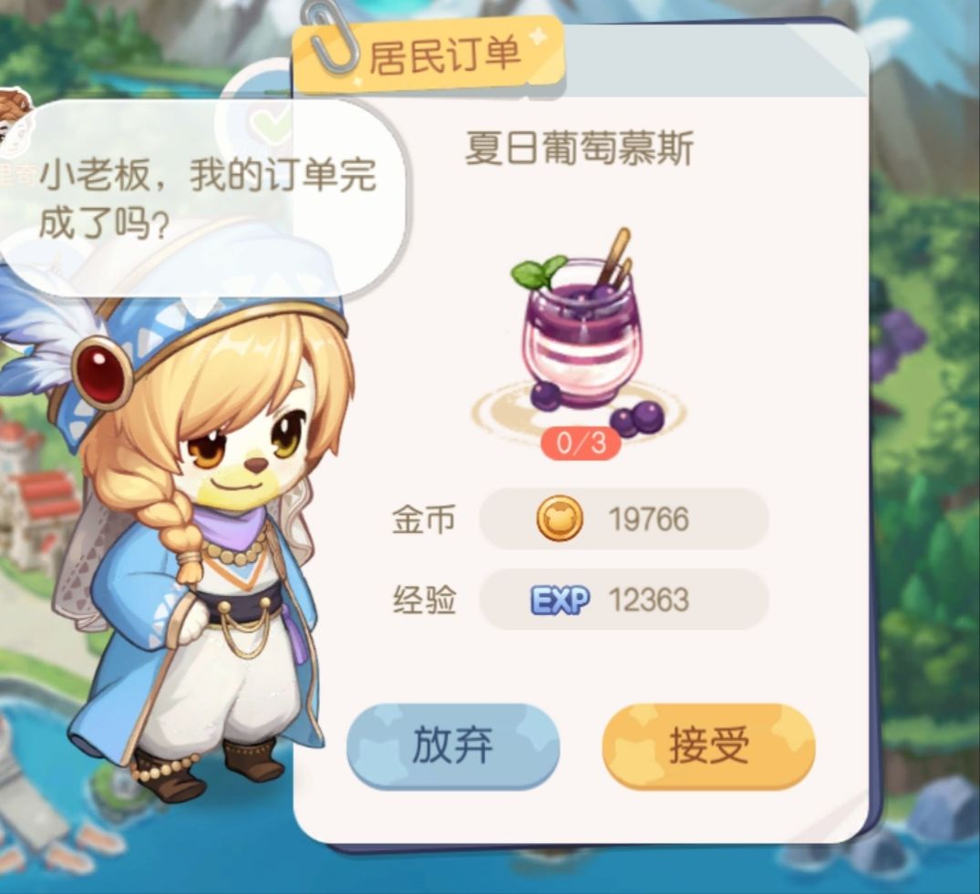 我个人非常推荐你们多做料理订单,因为料理订单所付出的材料以及资源成本是很低的,但是收获的金钱和经验却不低。