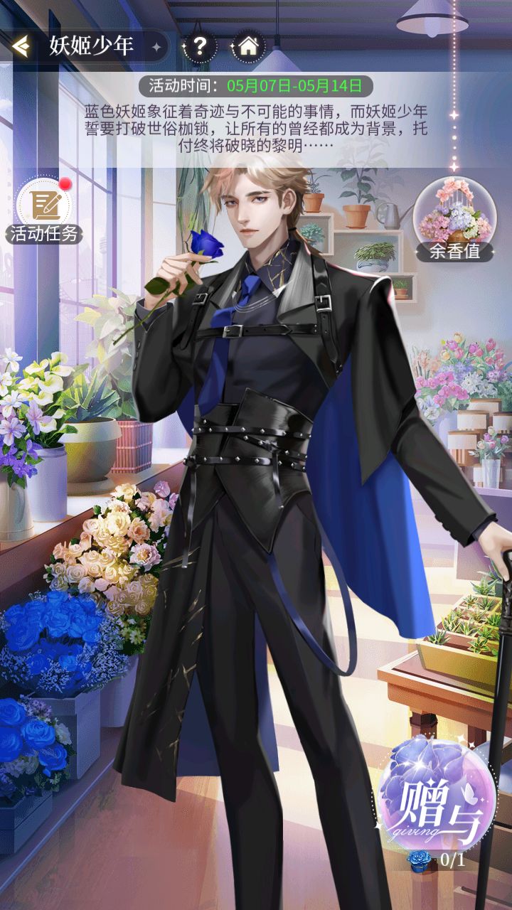 1、完成任务或通过每日充值可获得活动道具【蓝色妖姬】,将【蓝色妖姬】赠与辰星即可累计【余香值】。