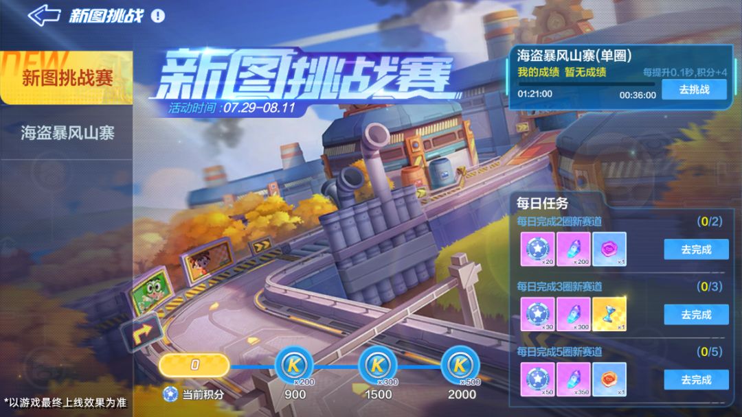 7月29日-8月11日期间将开启新图挑战赛,车友们完成新图挑战,即可获得奖励和积分。奖励包括时间沙漏、紫色幸运币和橙色幸运币,而积分可用于兑换酷币。活动结束时,计时挑战成绩排名在全区前100名的车友,可获得新图拓荒者*30天称号哦~