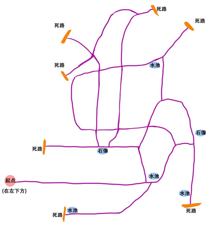 2. 按照地图(图1),每一条路都走一次,必能找到所有宝箱和 祈愿台(终点)的位置。