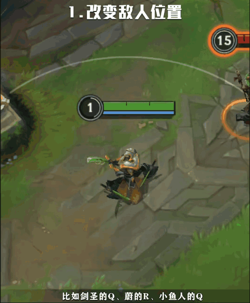 召唤师可以利用炼金高压罐改变一些敌人的位置。可以和位移距离固定的技能搭配使用,在落地的瞬间,直接使用炼金高压罐将敌人打回原来的位置。如剑圣的Q(1)、蔚的R(4)、菲兹的Q(1)等,用好了能打出“小回旋踢”的效果。