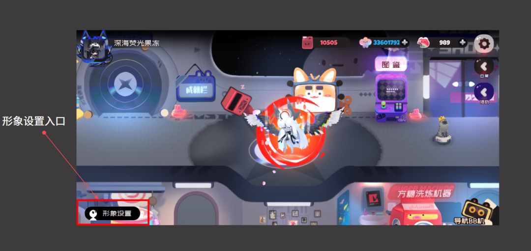新版本更新之后,在飞船主界面和新大厅的左下角将会添加“形象设置”的功能
