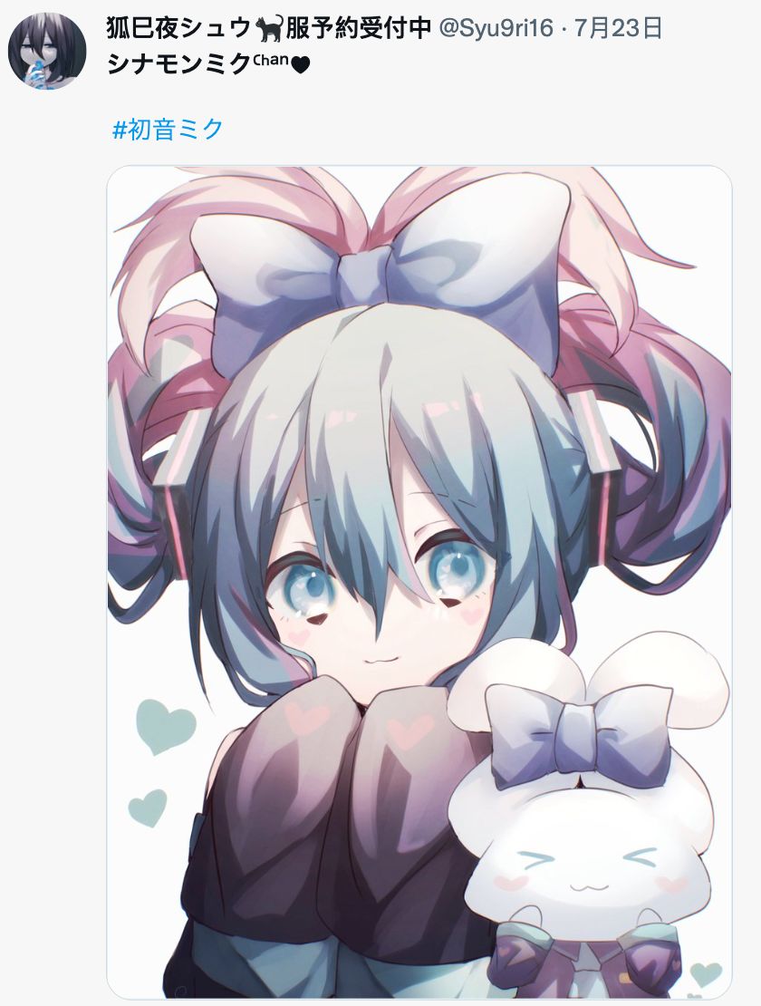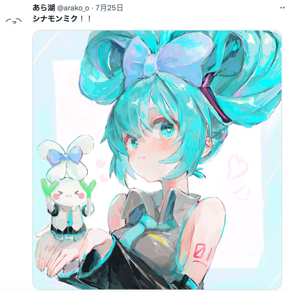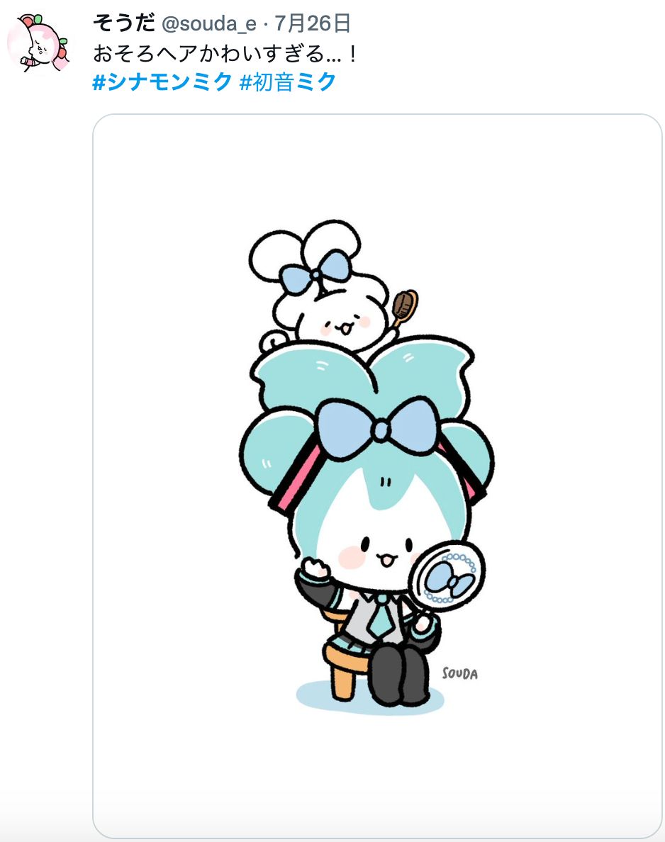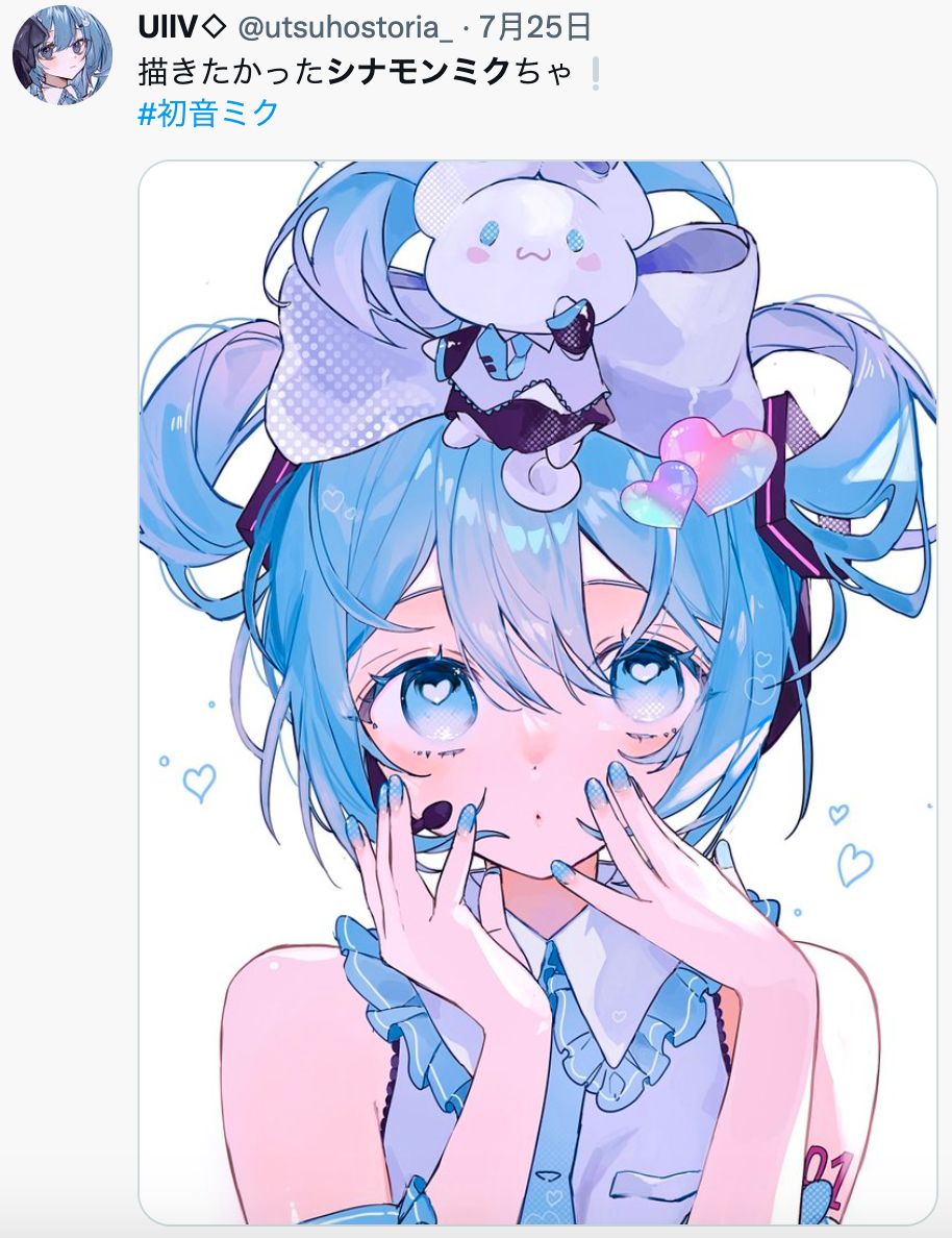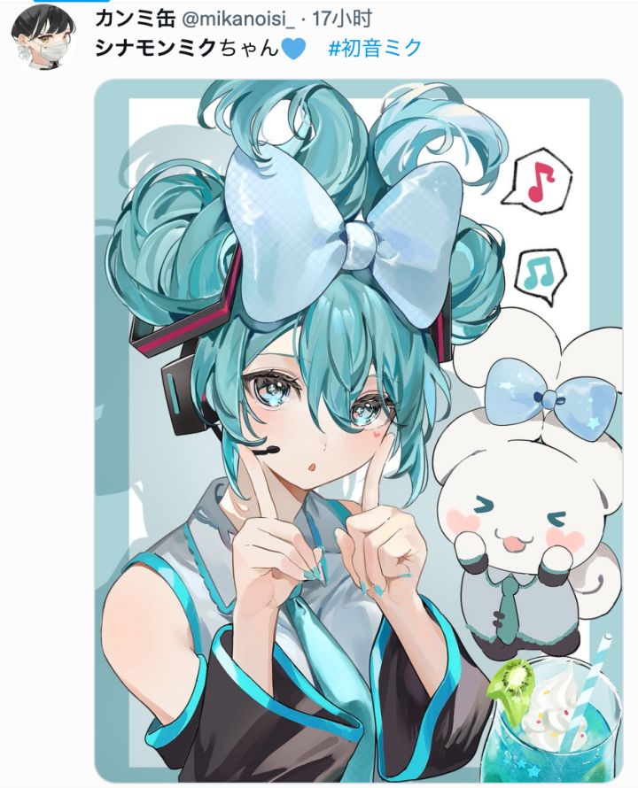 初音x玉桂狗联名中,“根据玉桂狗耳朵设计的初音发型”由于过于可爱,引发了大波好看的创作~